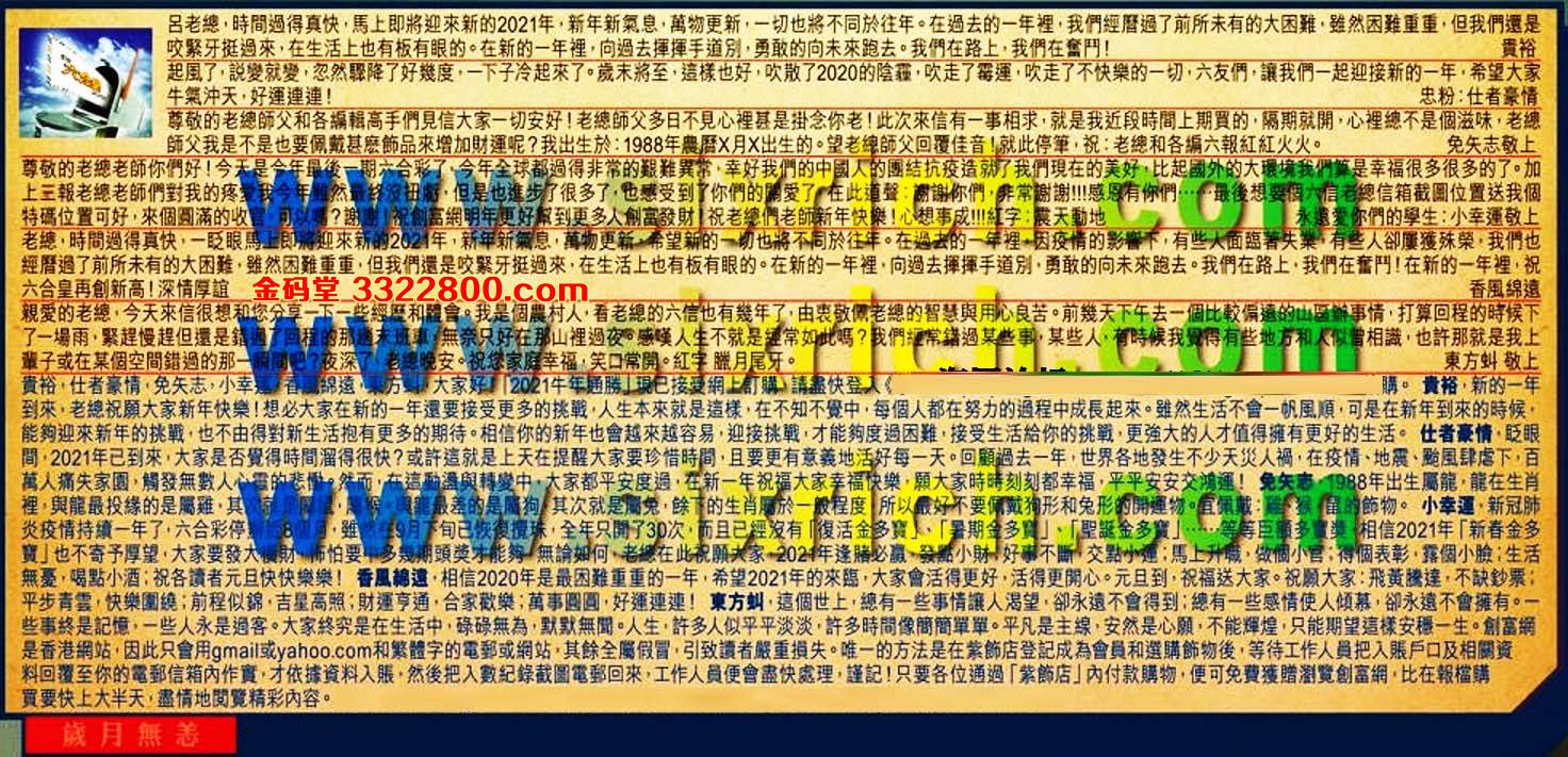 【5】.老總,時間過得真快,臣眼馬上迎来新的2021年,新军新篇息,萬物更箱一希望新的一切也将不同於往年。在過去的一年裡因疫情的影普下,有些人面喝著失某有些人卻屢獲殊荣,我們也經曆過了前所未有的大困難,雖然困難重重,但我們還是咬緊牙挺過來,在生活上也有板有眼的。在新的年裡,向過去揮揮手道別,勇敢的向未來跑去。我們在路上,我們在奮門!在新的一年裡,祝六合皇再創新高!深情厚誼  香風綿遠